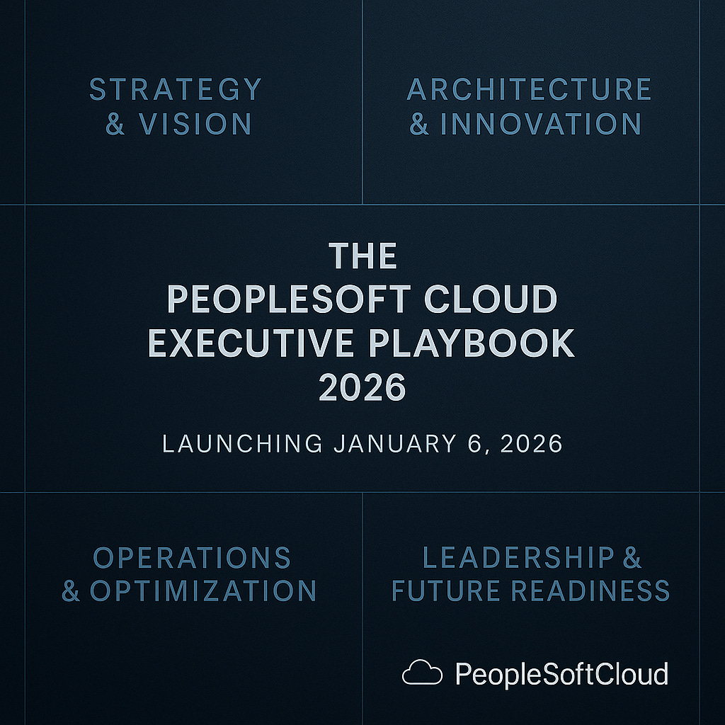 Starting January 6, The PeopleSoft Cloud Executive Playbook begins. This is a full year of weekly insights designed for CIOs, CTOs, and technology leaders shaping the future of PeopleSoft.